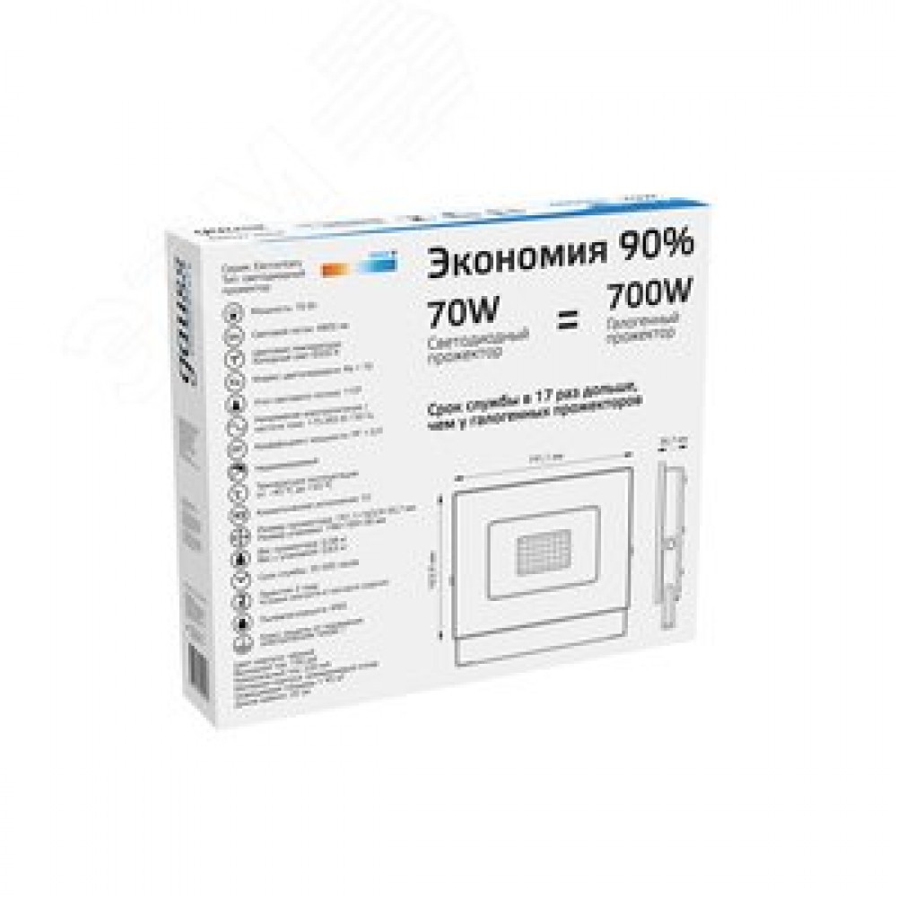 Технические характеристики Прожектор светодиодный ДО 70 Вт 6300 Лм 6500К AC 220В IP65 140х208х30 мм Elementary G2