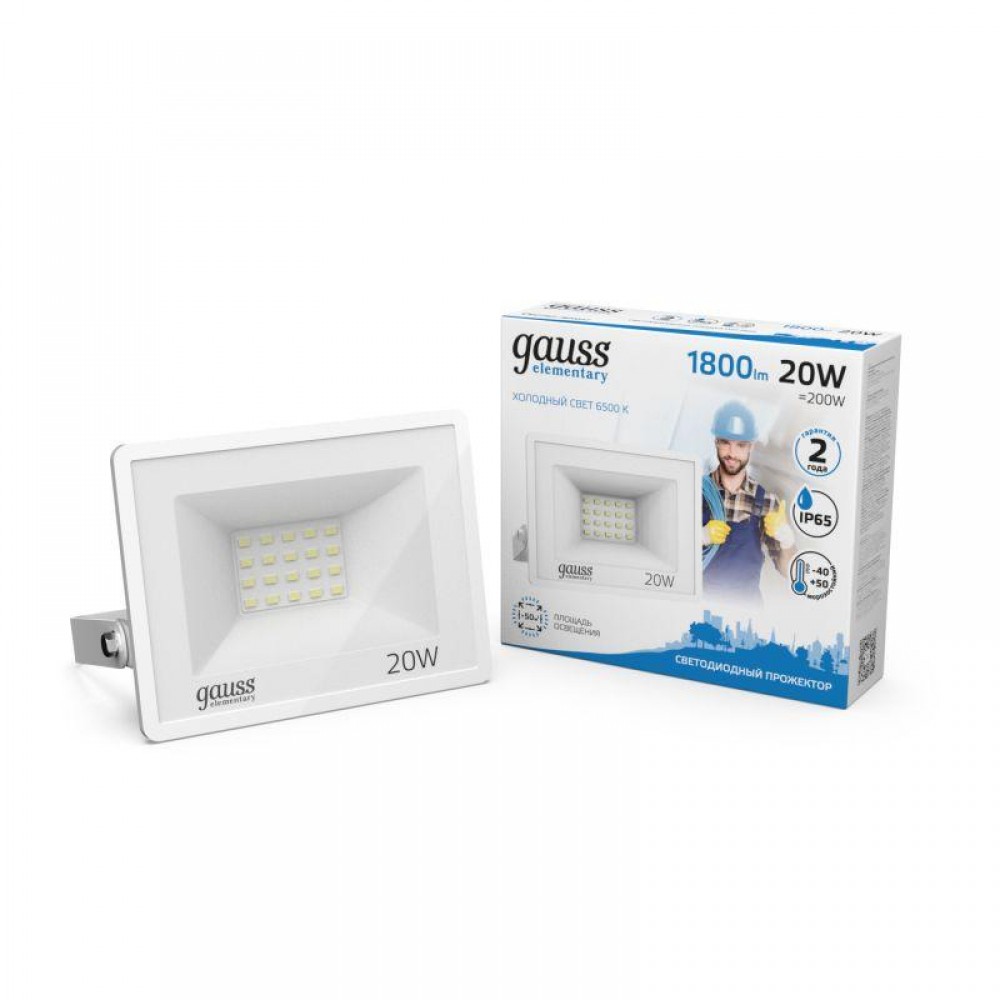 Прожектор светодиодный Elementary 20Вт 6500К IP65 1800лм 200-240В ДО бел. GAUSS 613120320