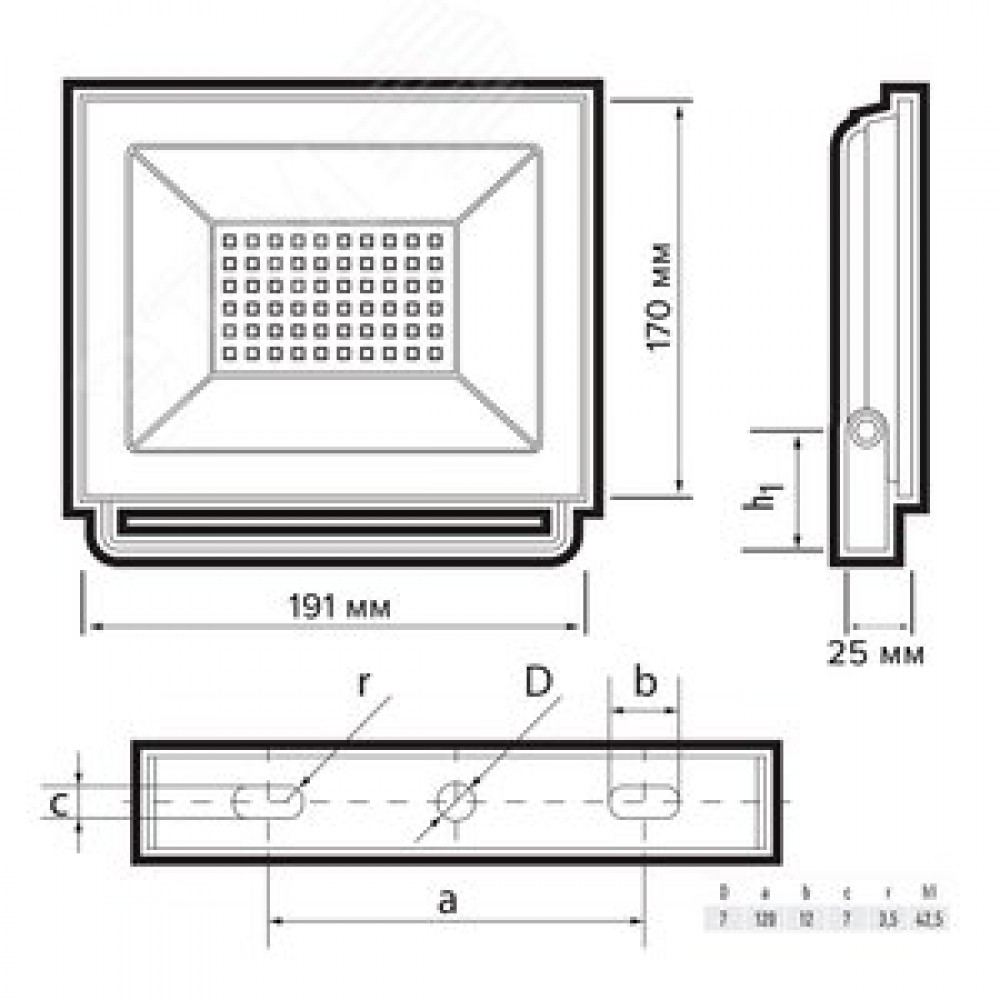 Технические характеристики Прожектор светодиодный СДО-20 70 Вт 6500К 5600 Лм IP65