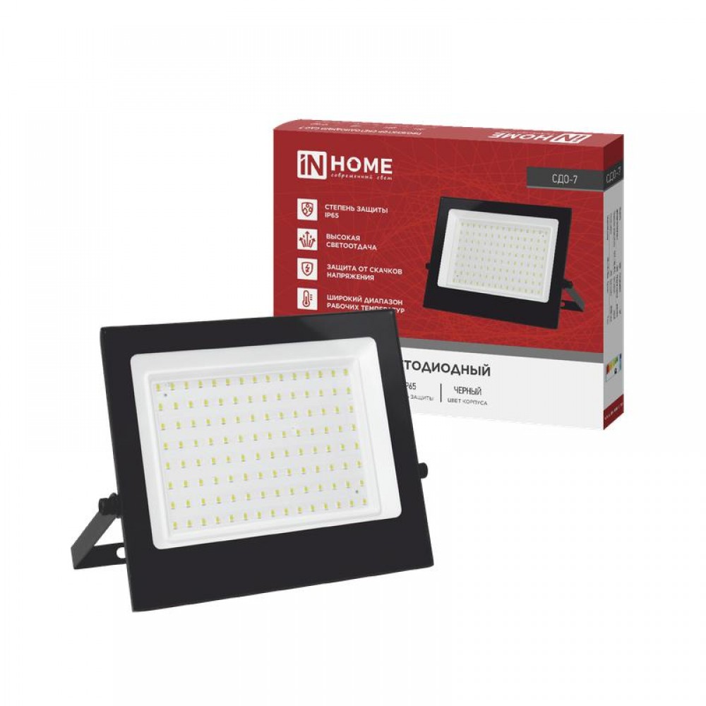 Прожектор светодиодный СДО-7 100Вт 4000К IP65 230В черн. IN HOME 4690612055152