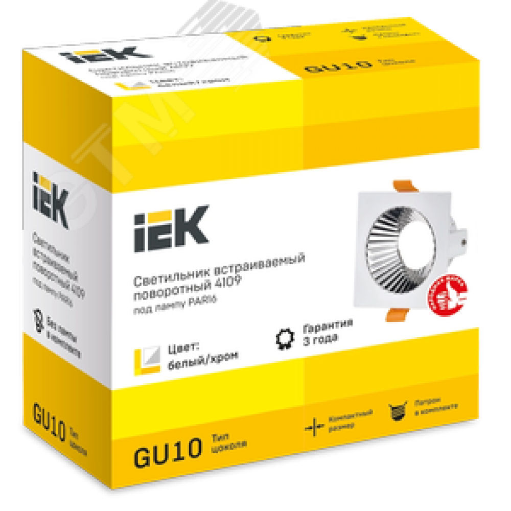 Технические характеристики Светильник 4109 встраиваемый декоративный поворотный под лампу GU10 белый/хром пластик