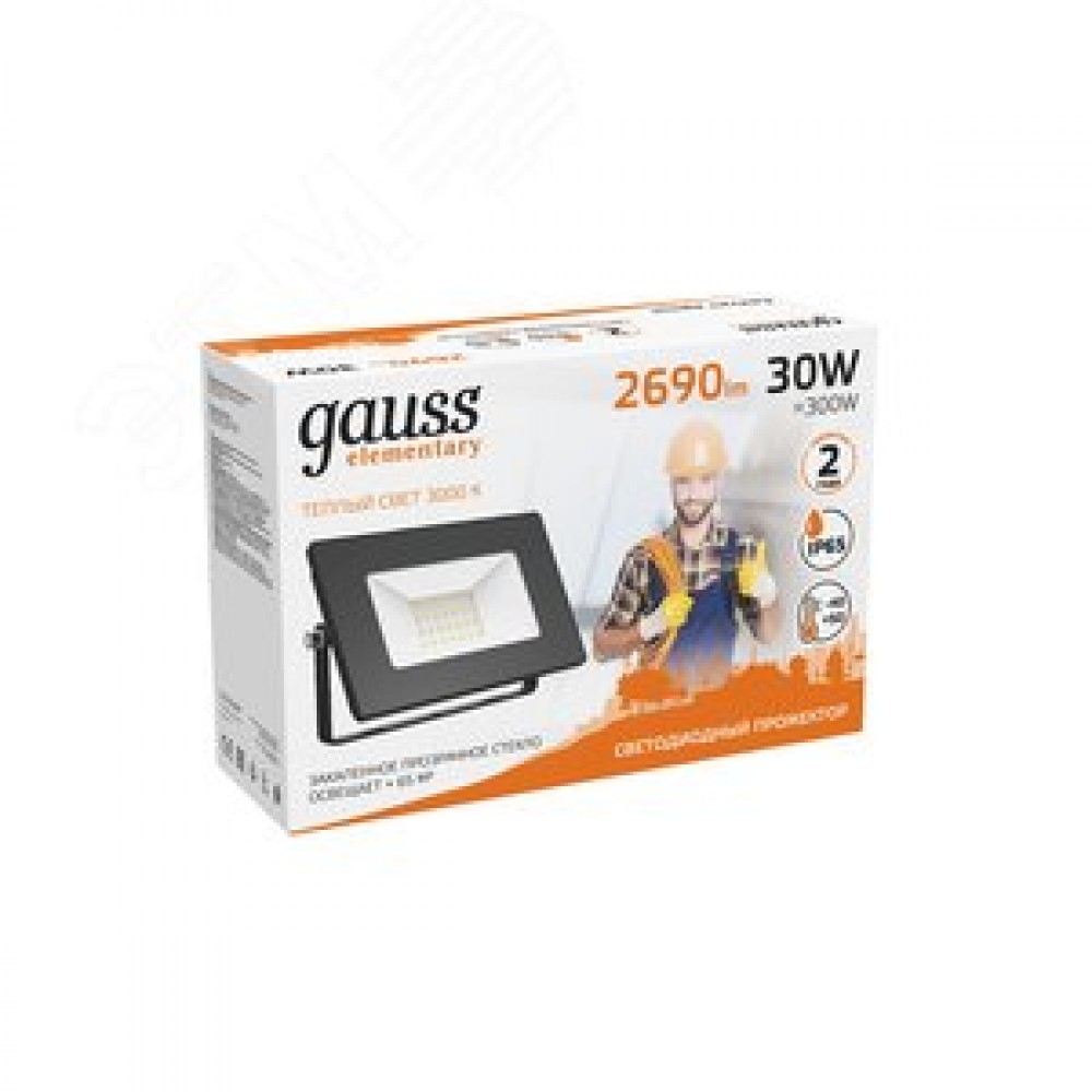Технические характеристики Прожектор светодиодный ДО 30 Вт 2690 лм 3000К AC 220В Черный IP65 126х136х30мм Elementary G2 Gauss