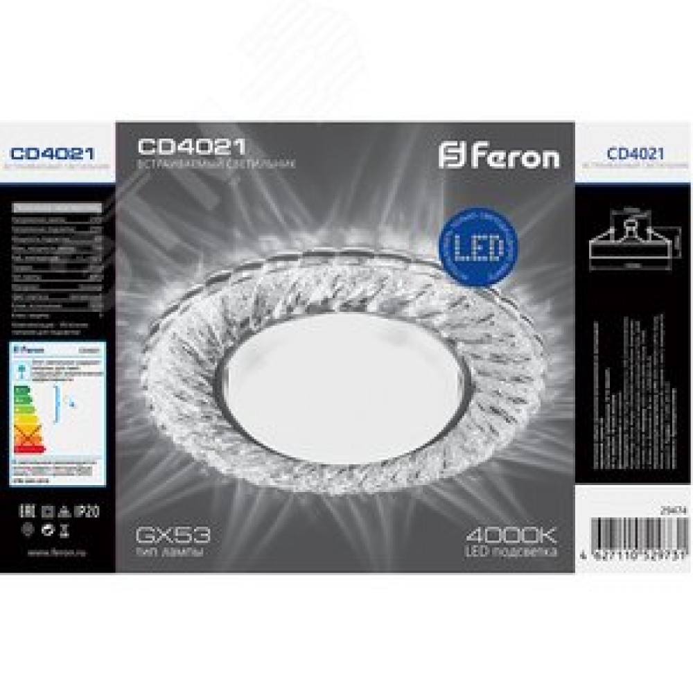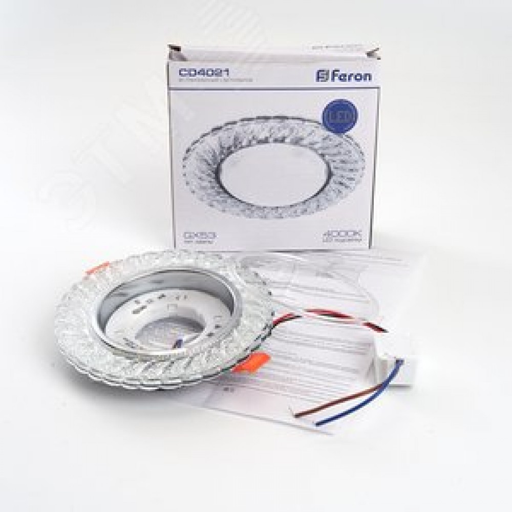 Технические характеристики Светильник ДВО-15w GX53 без лампы со светодиодной подсветкой 4000К хром с прозрачным стеклом