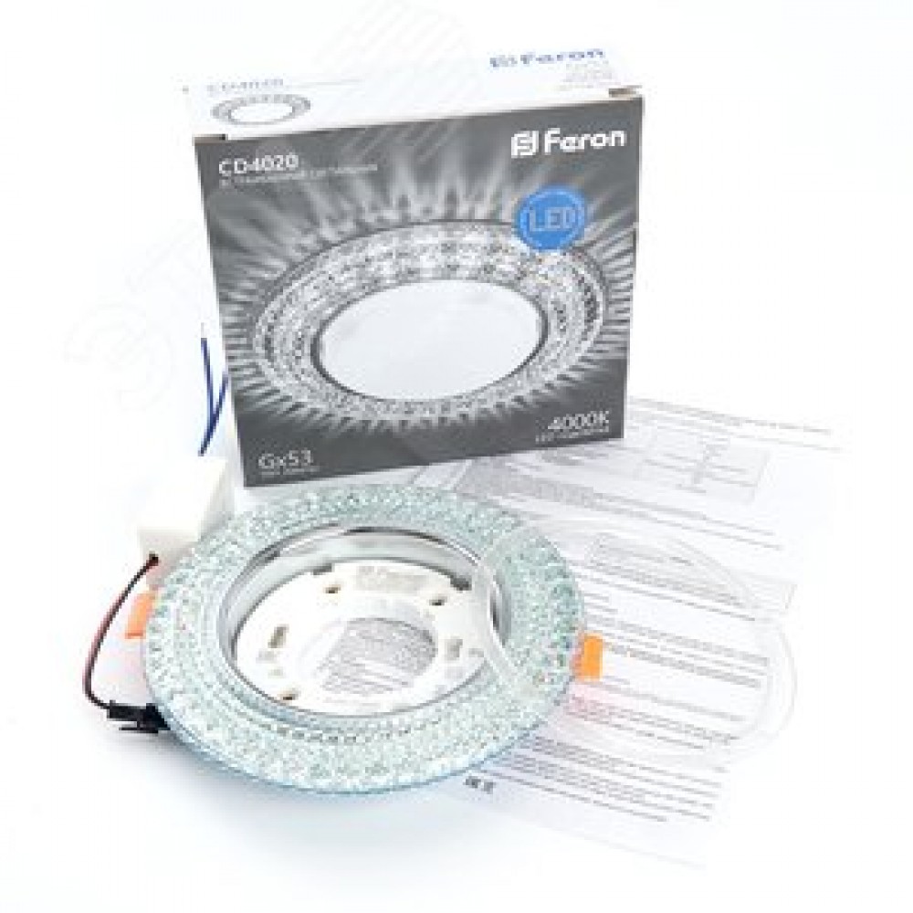 Светильник ДВО-15w GX53 без лампы со светодиодной подсветкой 4000К хром с прозрачным стеклом