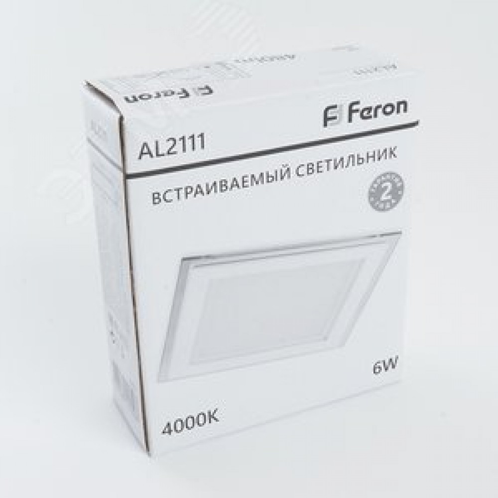 Технические характеристики Светильник светодиодный ДВО-6w 4000K 480Лм квадратный со стеклом белый