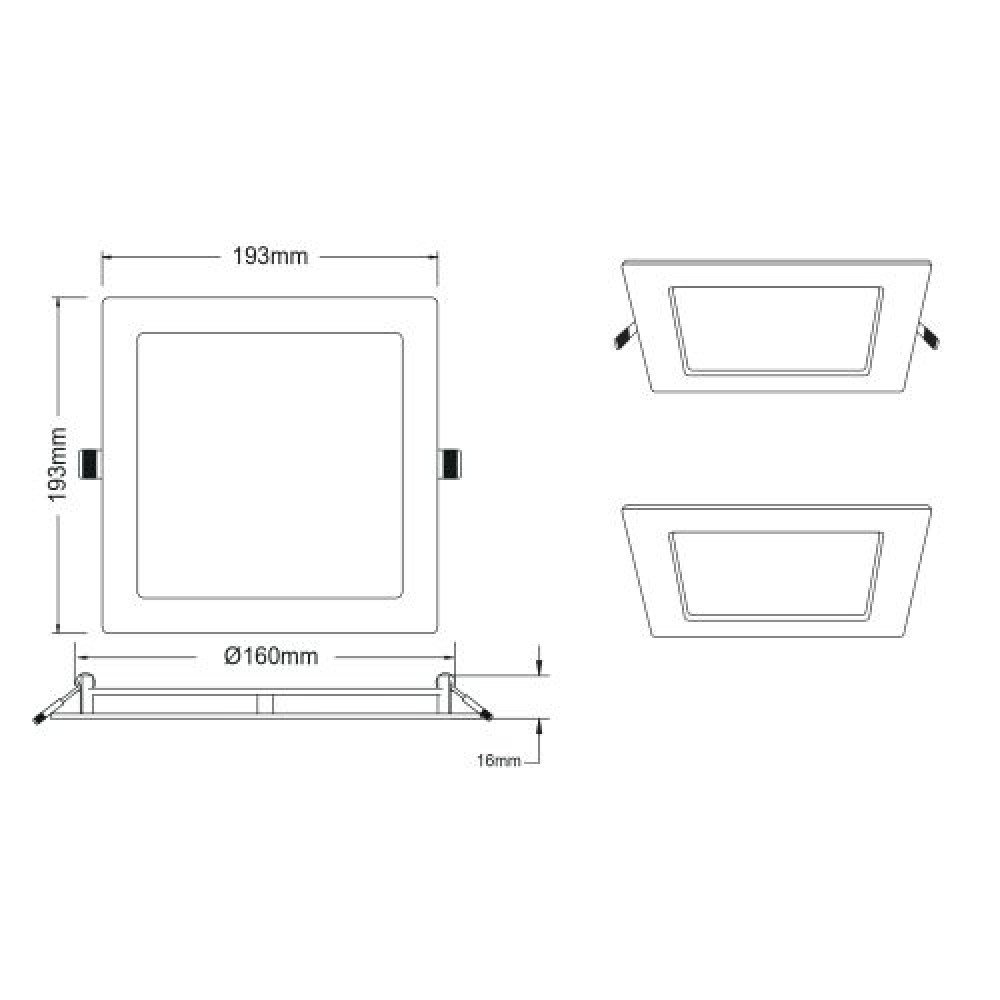 Технические характеристики Светильник светодиодный LED 2-16-6K 16Вт 6500К встраив. квадратный ЭРА Б0058405