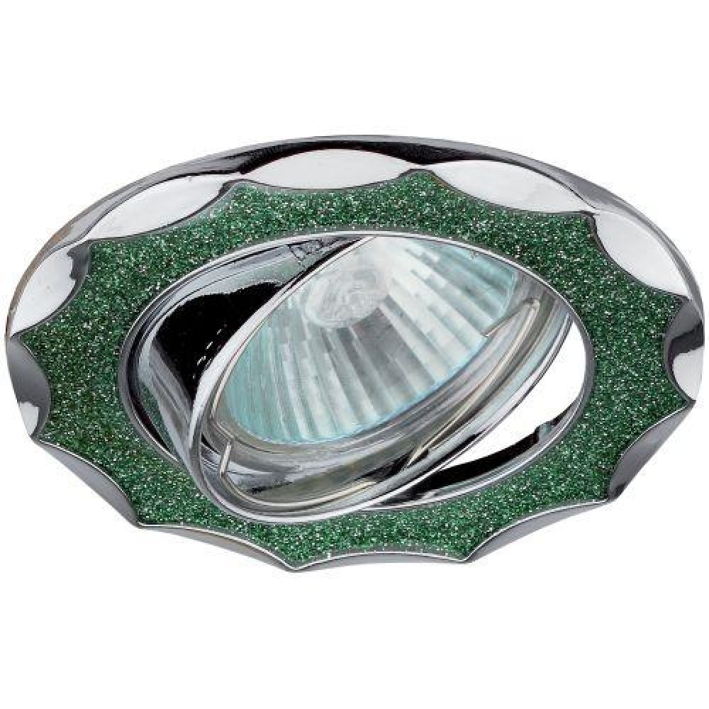 • Светильник точечный DK17 CH/SH GR 50Вт MR16 12В декор "звезда со стекл. крошкой" хром./зел. блеск ЭРА C0043754