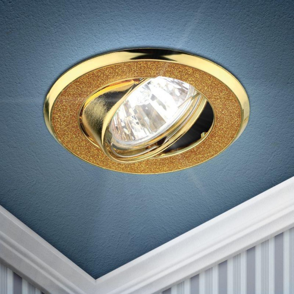 Светильник точечный DK18 GD/SH YL 50Вт MR16 12В декор "кругл. со стекл. крошкой" зол./зол. ЭРА C0043760