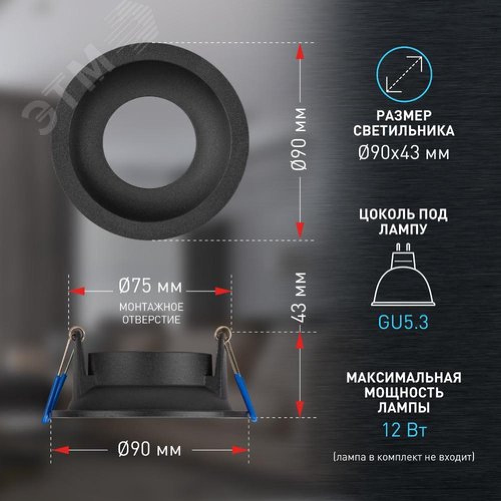 Технические характеристики Светильник встраиваемый влагозащищенный под лампу MR16/GU5.3 (в комплект не входит) IP44 черный матовый WR4 SBK