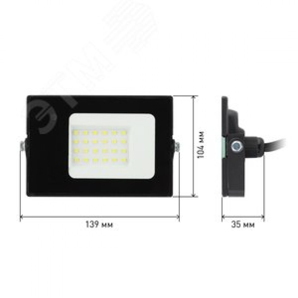 Технические характеристики Прожектор светодиодный ДО-30 Вт 6500К 2100 ЛмIP65 200-240В встроенный датчик движения черный 30w холодный корпус LPR-041-1-65K-030