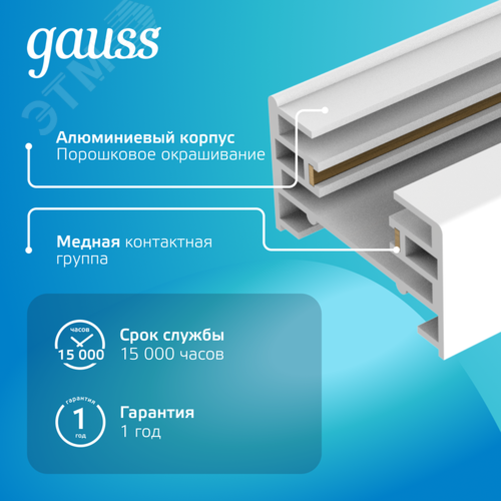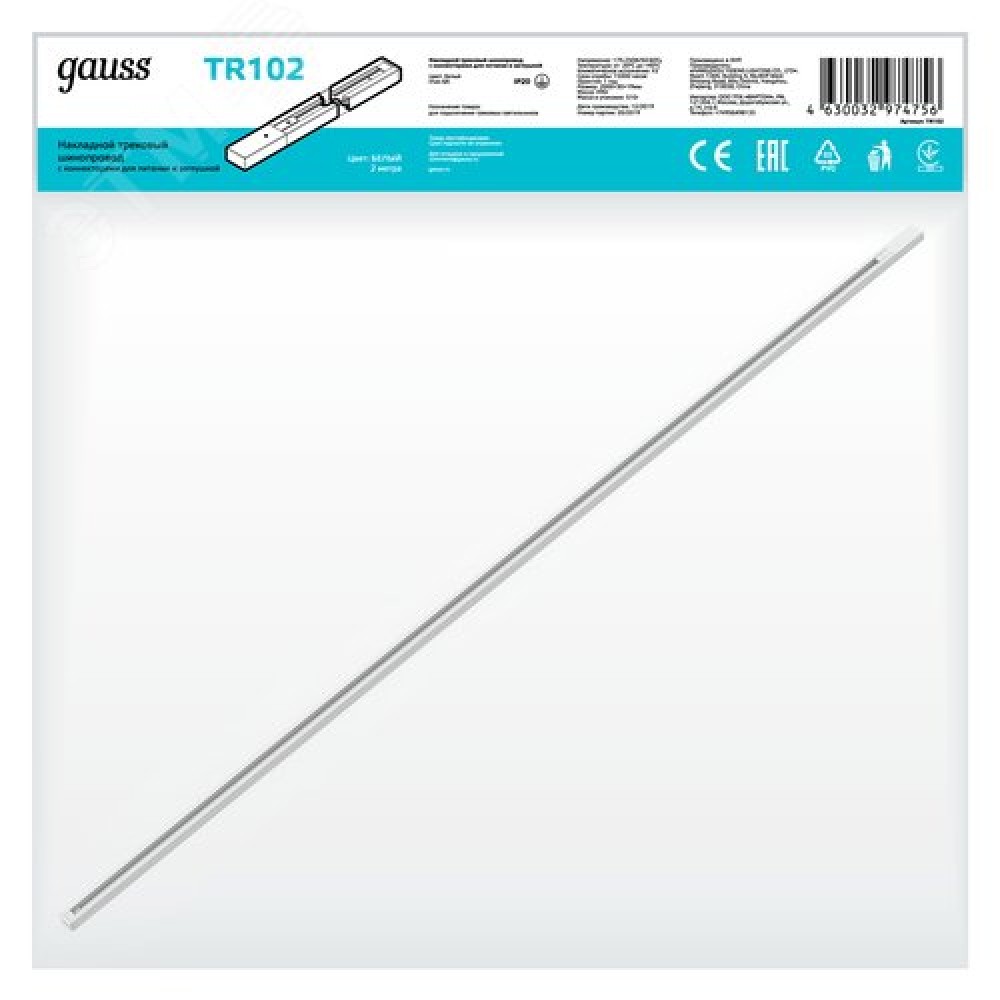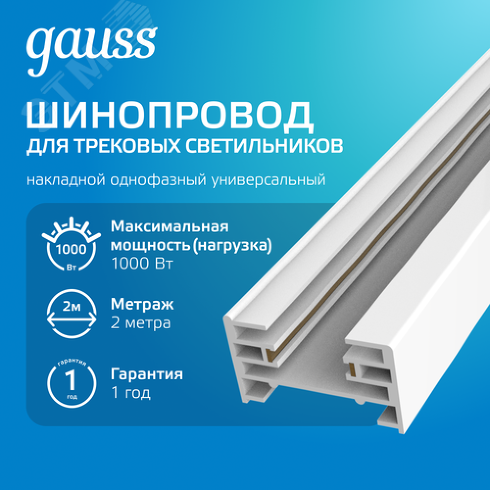 Технические характеристики Шинопровод накладной AC 220В Белый IP20 2000х34мм с адаптером питания и заглушкой Track
