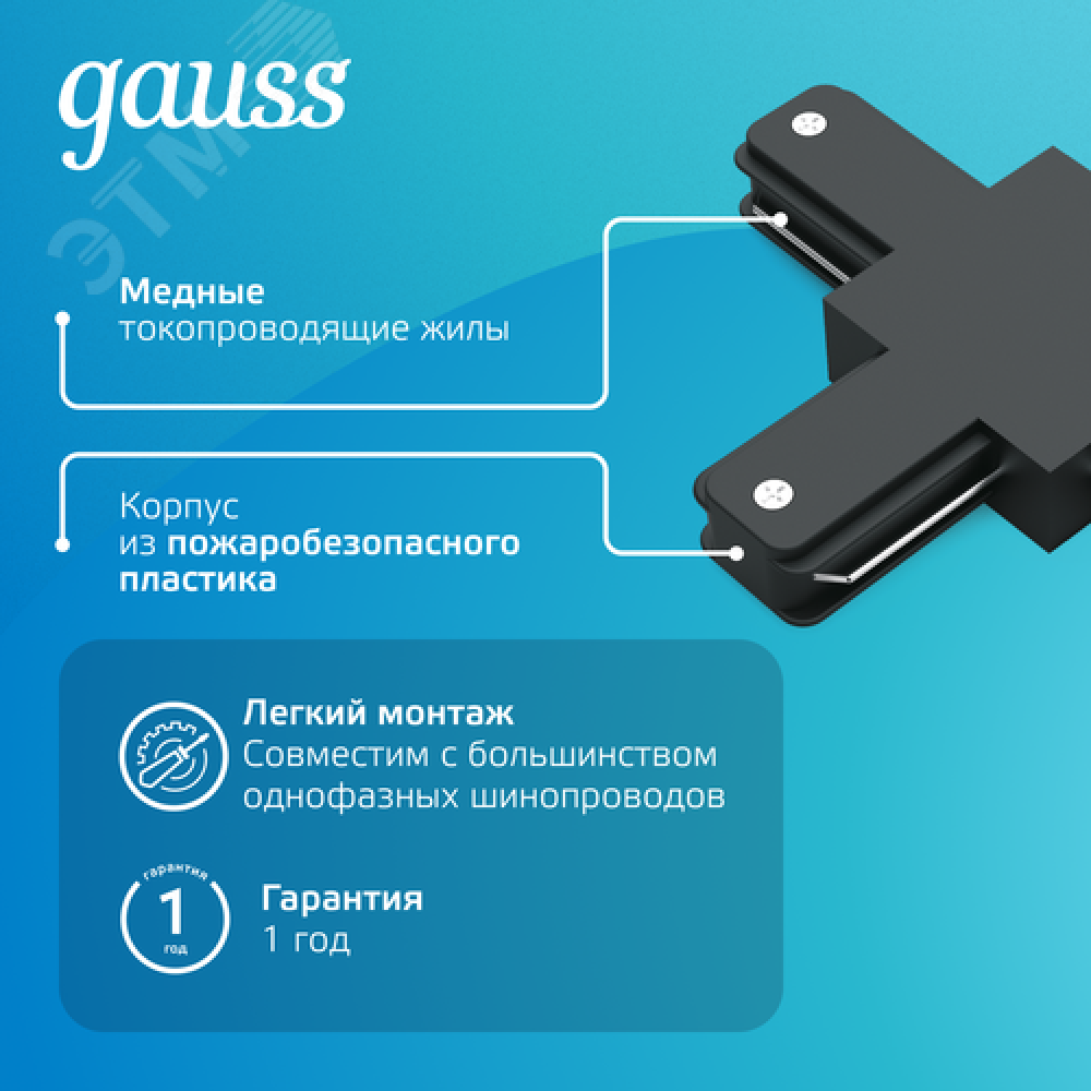 Технические характеристики Коннектор для трековых шинопроводов AC 220В Черный IP20 Т-образный Track
