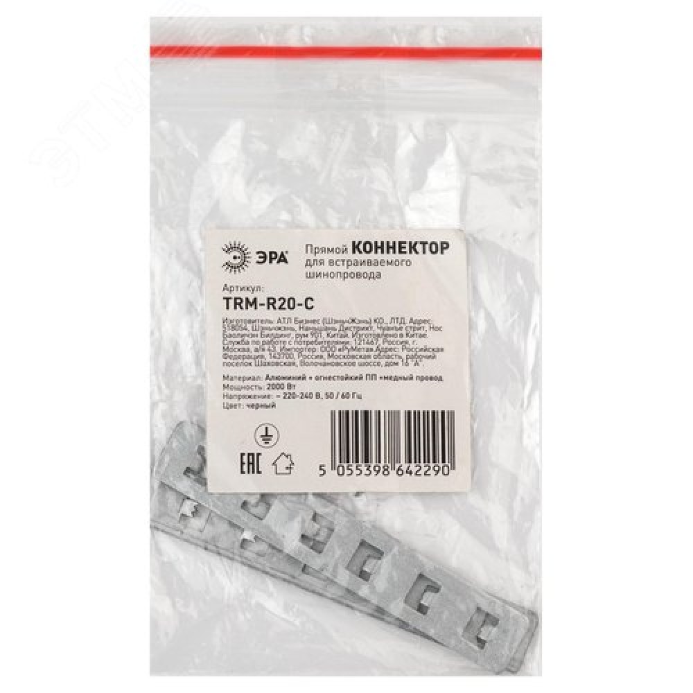 Технические характеристики Коннектор TRM-R20-C прямой для встраиваемого магнитного шинопровода NOVA TRM-R20, TRM-PC20 черный