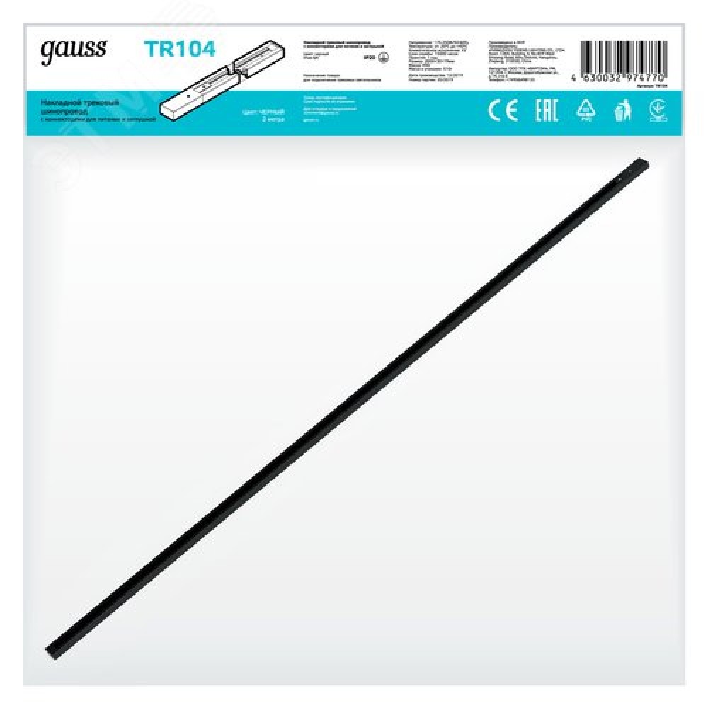 Технические характеристики Шинопровод накладной AC 220В Черный IP20 2000х34мм с адаптером питания и заглушкой Track