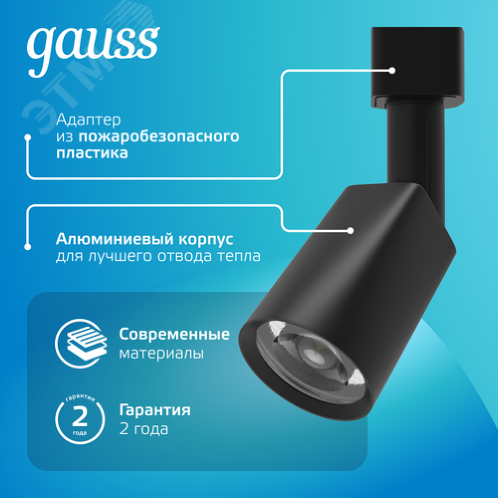 На складе Код товара: etm-2430894 Светильник трековый на шинопровод ДПО GU10 без лампы IP40 черный