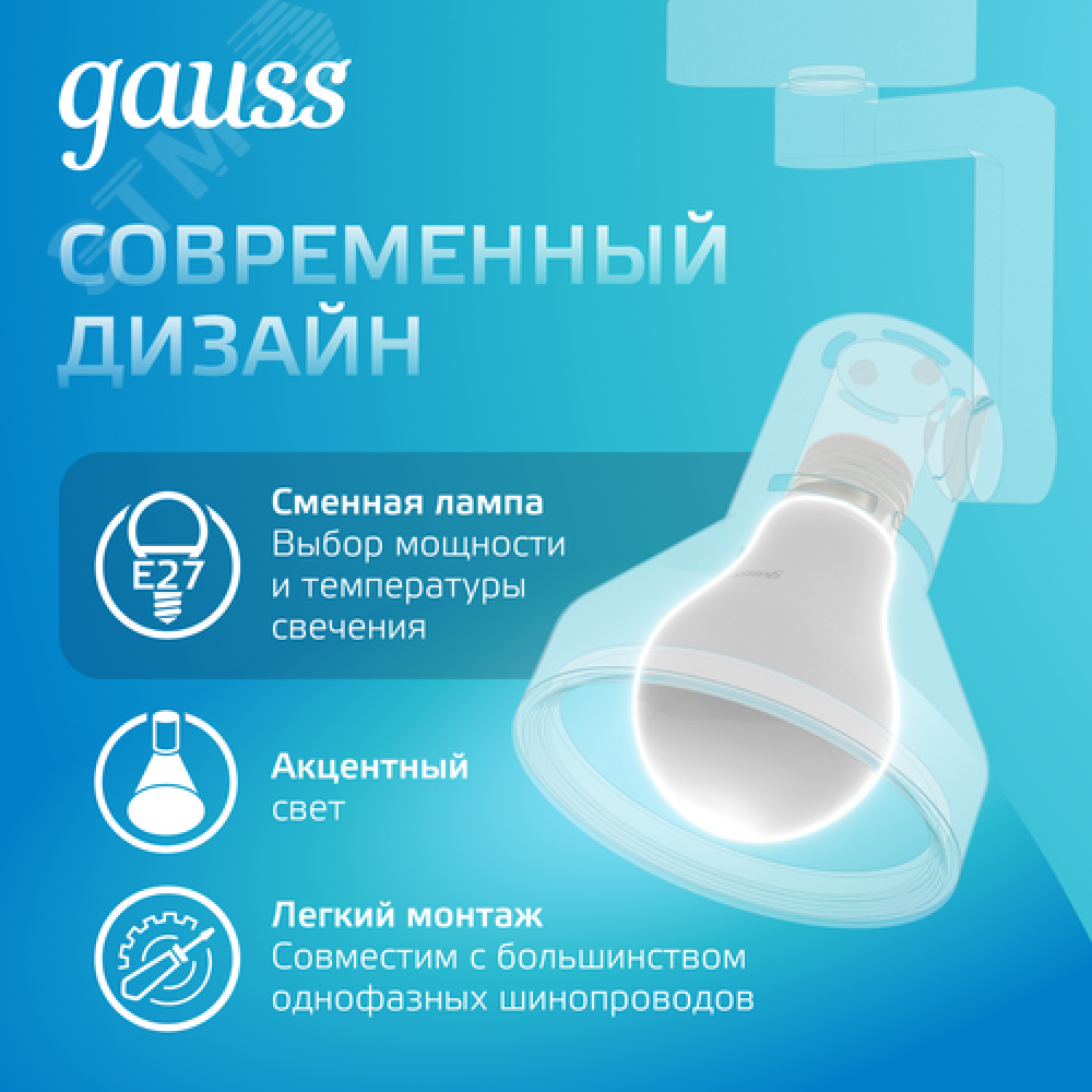• Светильник трековый на шинопровод под лампу 1хE27 AC 220В Белый IP20 150х112х230мм однофазный Track