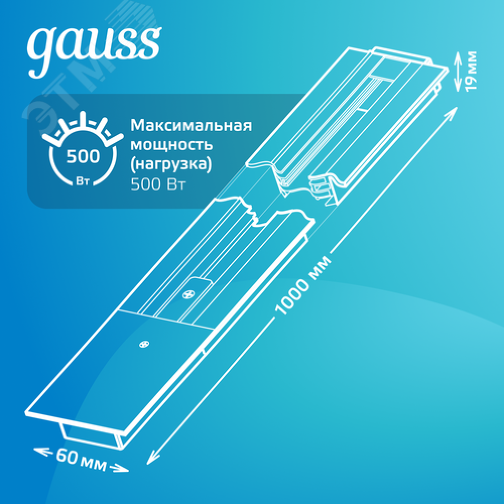 Технические характеристики Шинопровод встраиваемый AC 220В Белый IP20 1000х60мм с адаптером питания и заглушкой Track