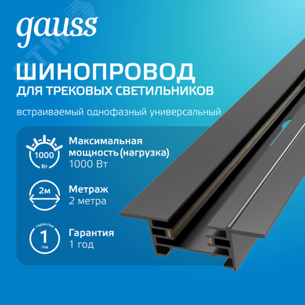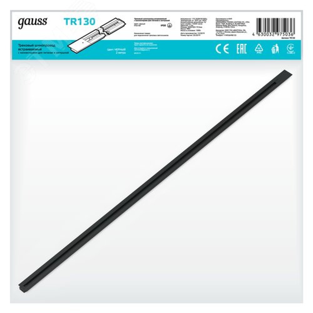 Технические характеристики Шинопровод встраиваемый AC 220В Черный IP20 2000х60мм с адаптером питания и заглушкой Track
