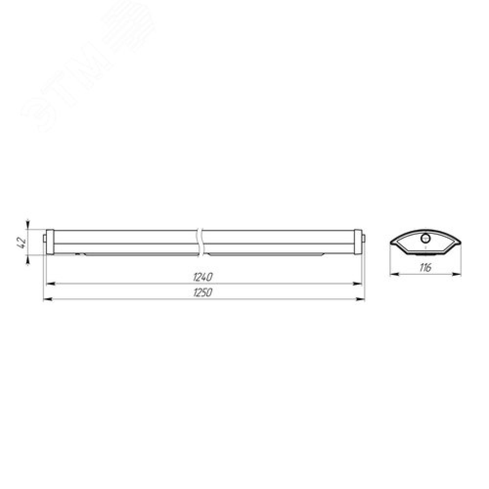 | Высота, мм42 | Длина, мм1250 | Количество ламп2 |