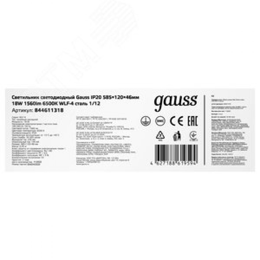 Технические характеристики Светильник светодиодный ДПО 18 Вт 1560 лм 6500К AC 220В IP20 585х120х46мм матовый опал WLF-4