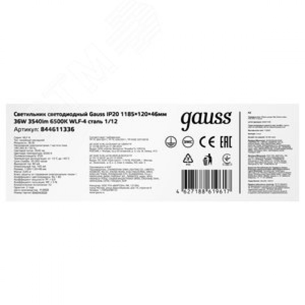 Технические характеристики Светильник светодиодный ДПО 36 Вт 3540 лм 6500К AC 220В IP20 1185х120х46мм матовый опал WLF-4