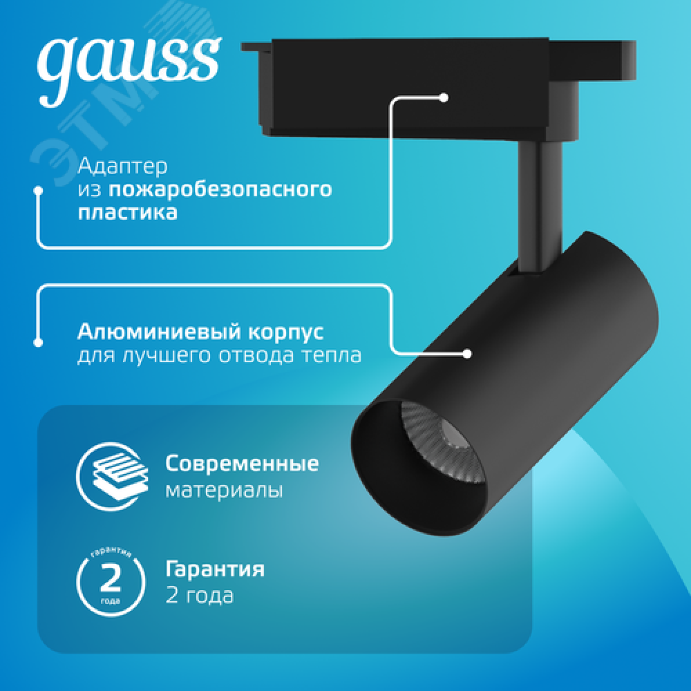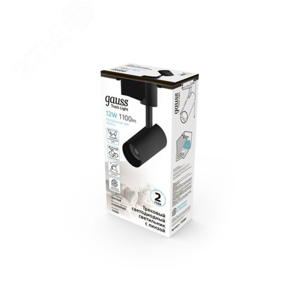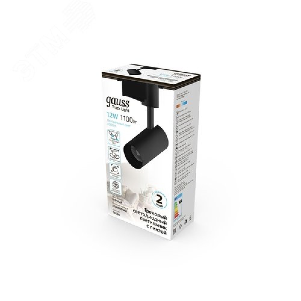 Технические характеристики Светильник светодиодный трековый на шинопровод ДПО 12 Вт 1100 лм 4000К AC 220В Черный IP20 D100х185мм однофазный угол 36 грд Track Gauss