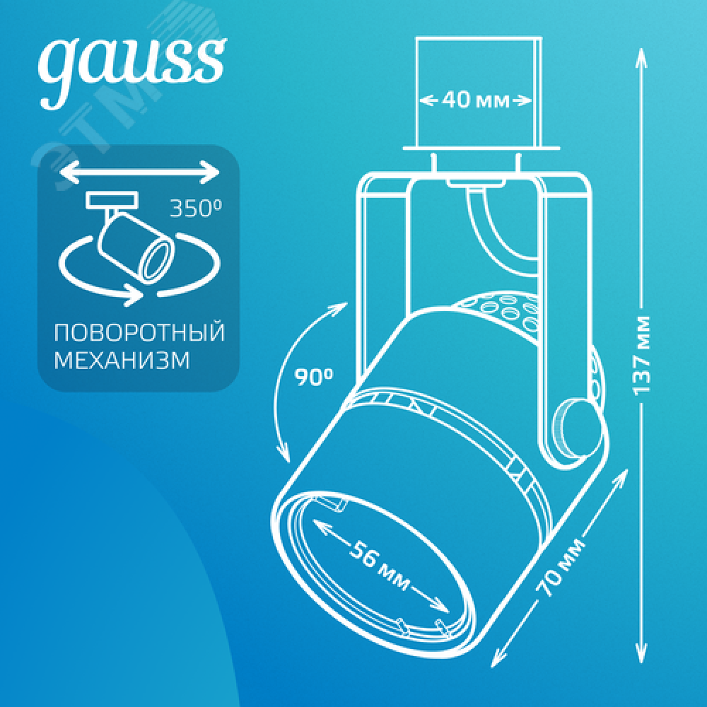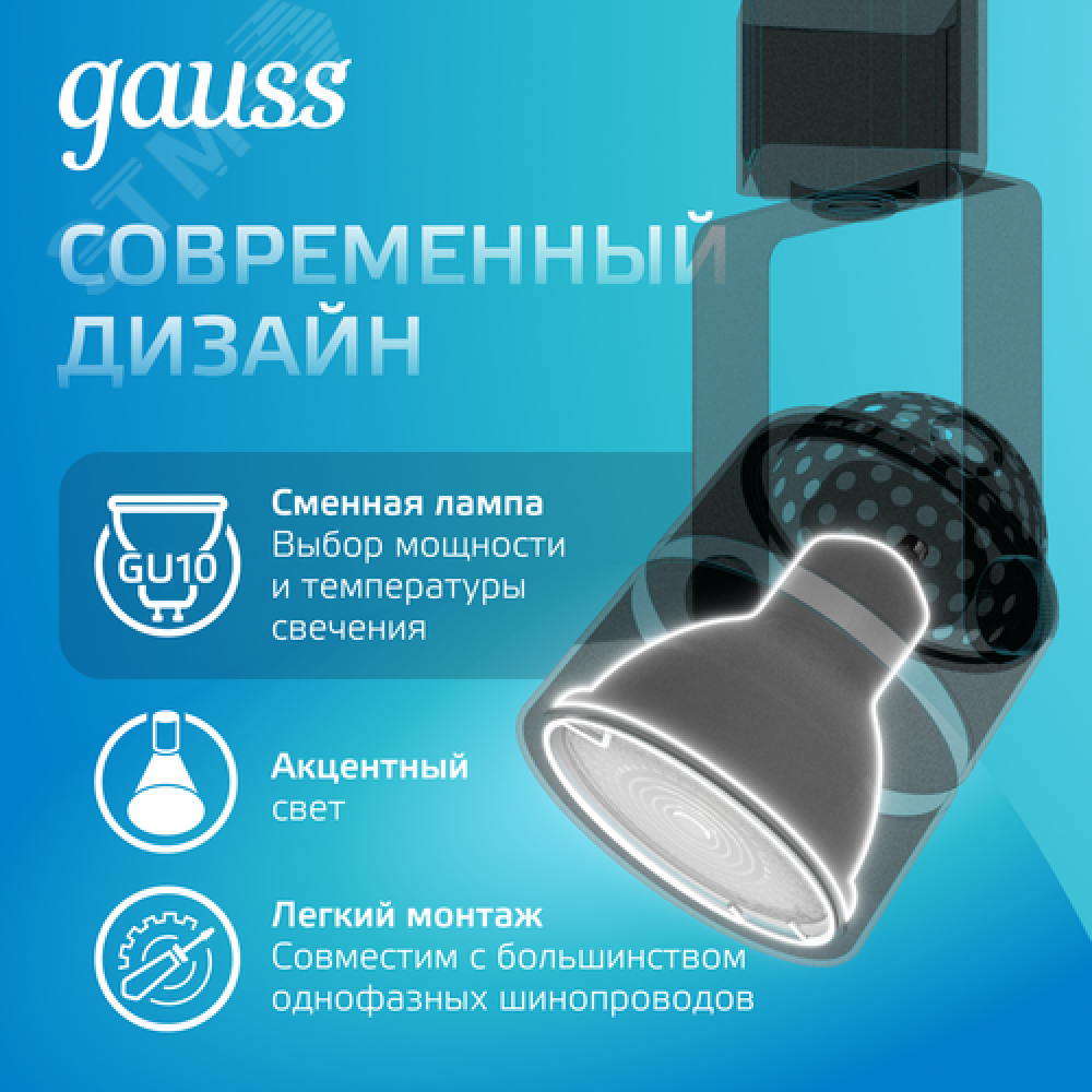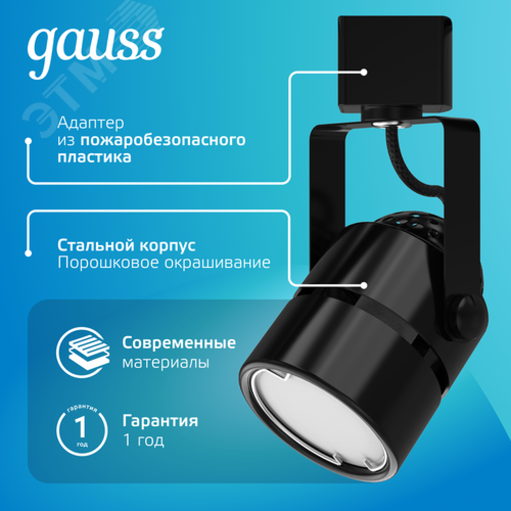 Технические характеристики Светильник трековый на шинопровод под лампу 1хGU10 AC 220В Черный IP20 D80х145мм однофазный Track