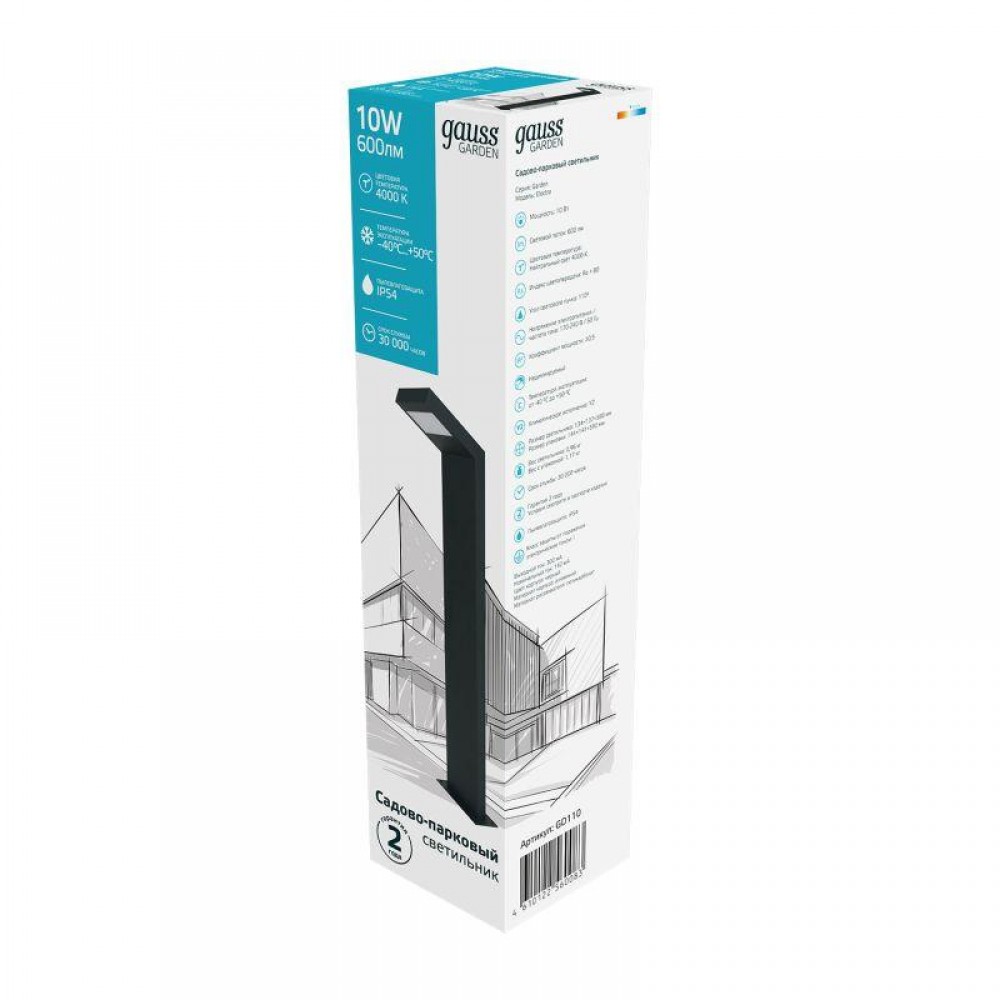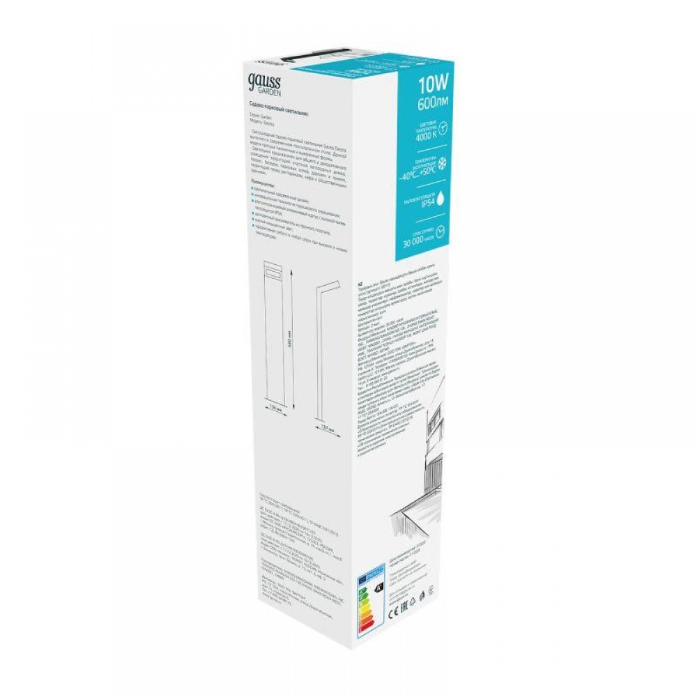 Светильник Electra 10Вт 4000К IP54 600лм 170-240В 134х134х580мм ДТУ столб садово-парковый GAUSS GD110 0 0 ₽