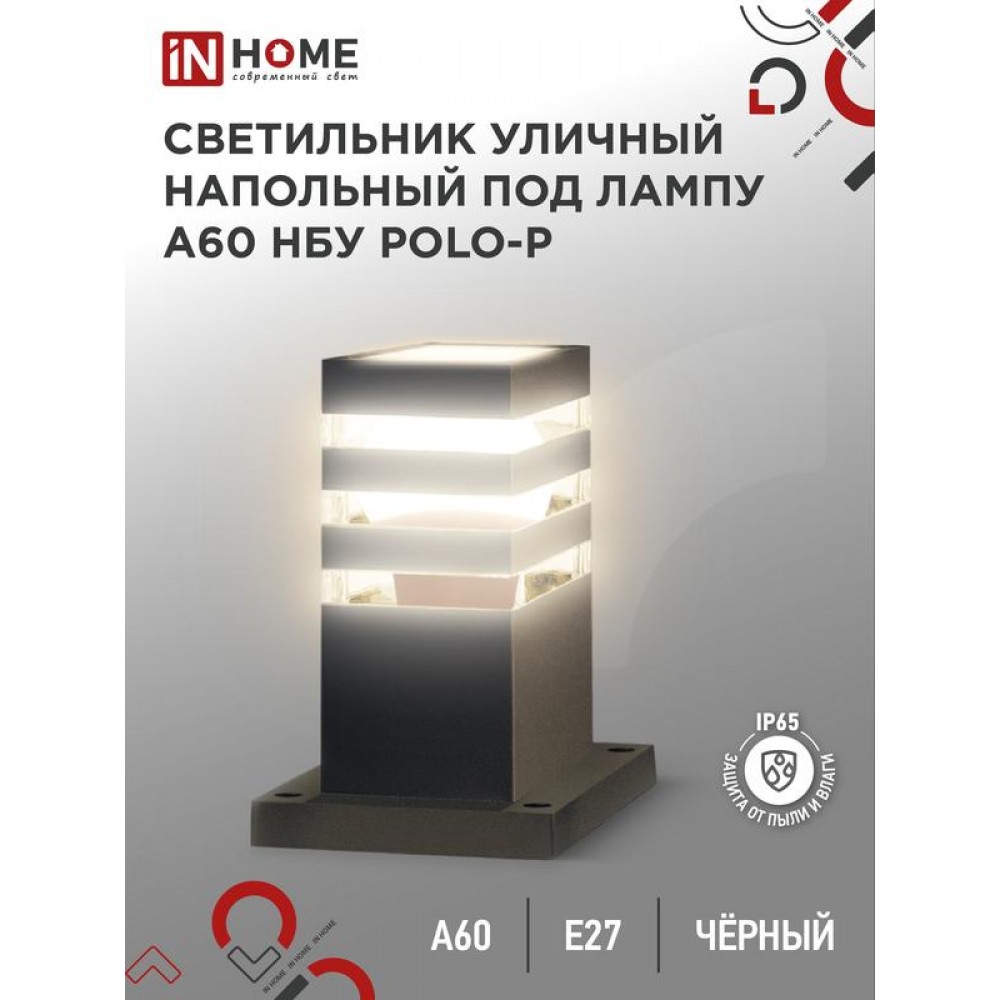 Светильник НБУ POLO-SP300-A60-BL E27 IP65 300мм уличный напольн. под лампу A60 алюм. черн. IN HOME 4690612051642 0 0 ₽