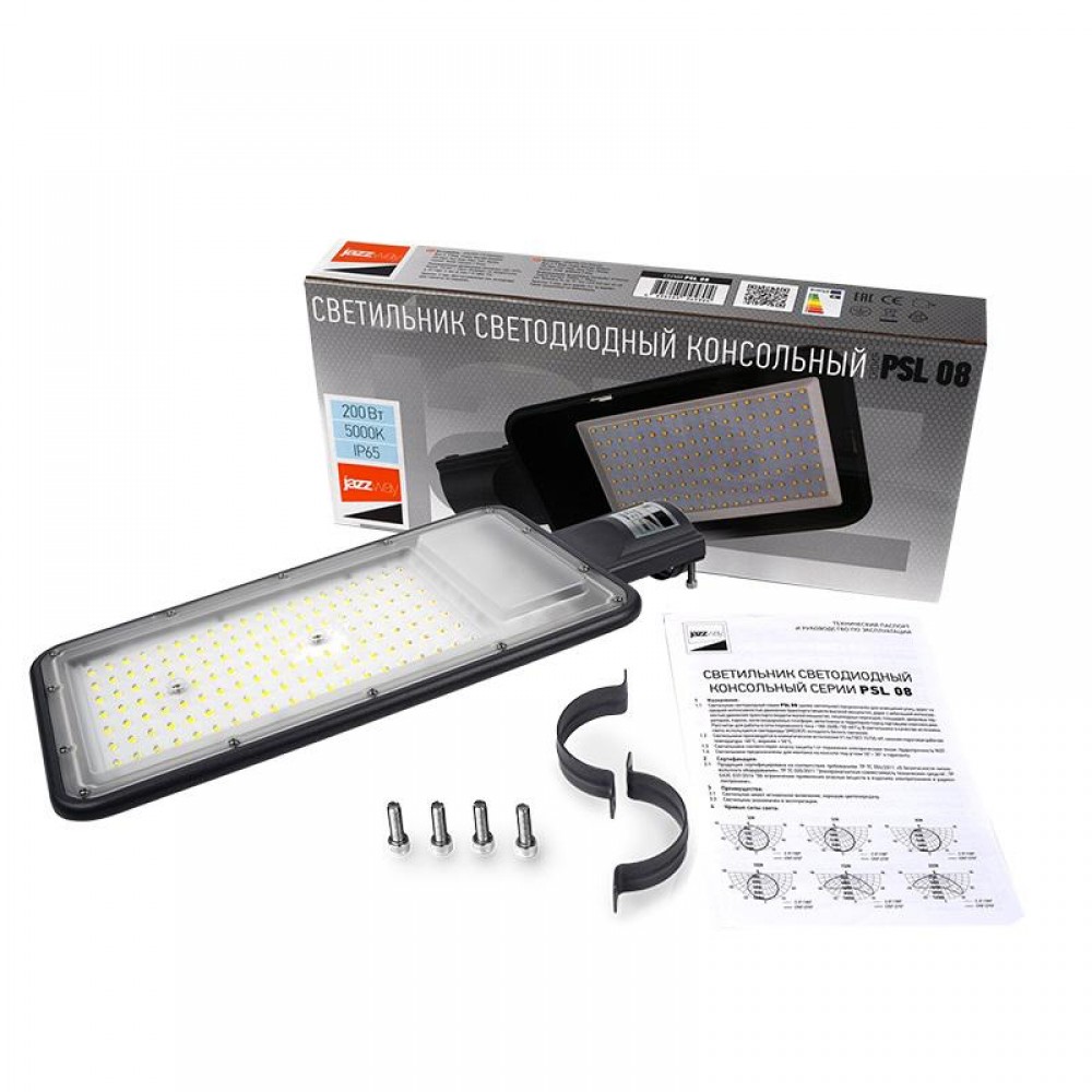 Технические характеристики Светильник светодиодный PSL 08 GR 200Вт 5000К IP65 140/70град. ДКУ уличный консольный с линзовым модулем Pro JazzWay 5045866