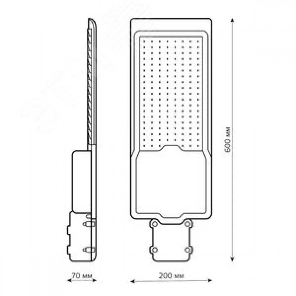 Технические характеристики Светильник уличный консольный ДКУ 200 Вт 20000 лм 5000К AC 220В IP65 600х200х70мм широкая КСС Ш Avenue