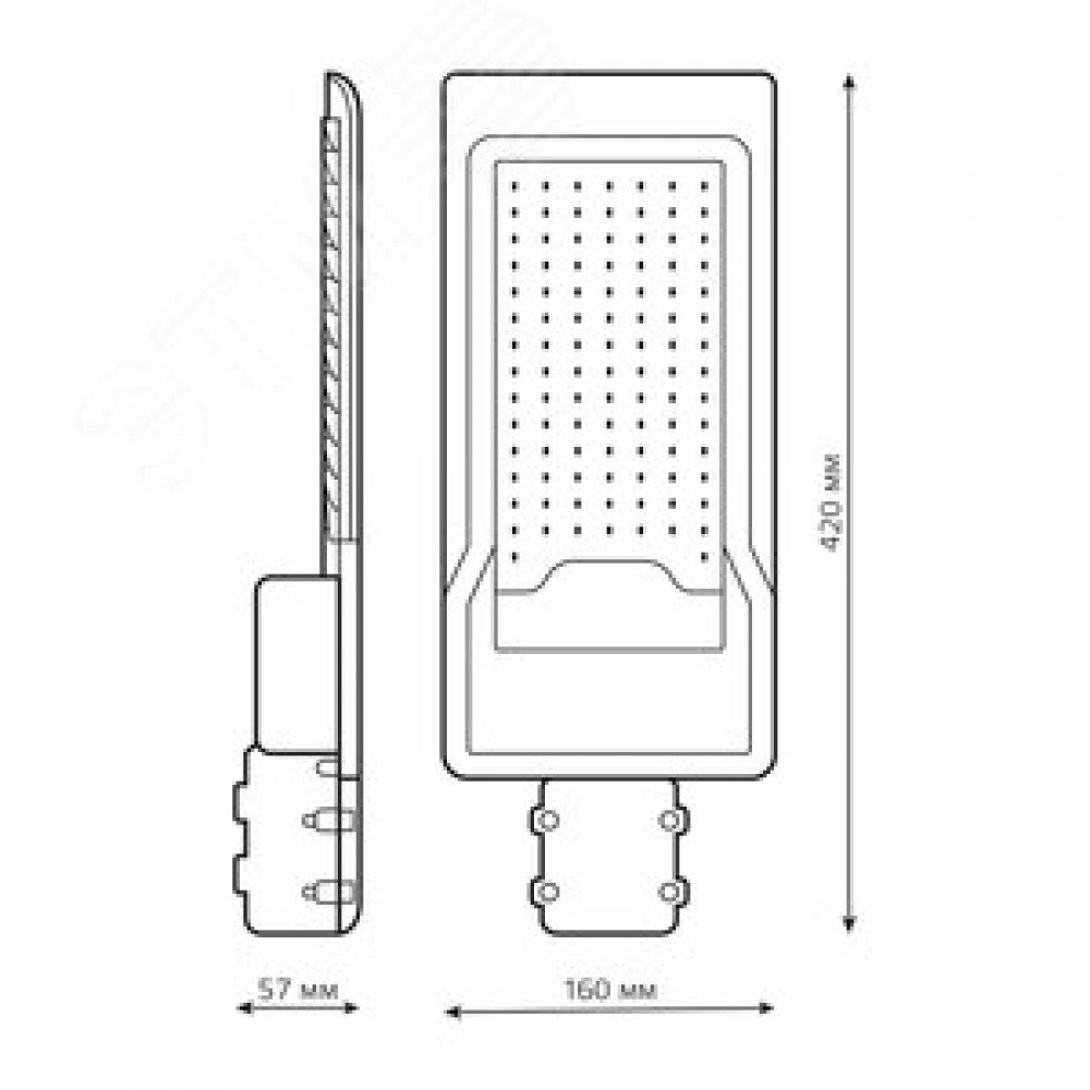Технические характеристики Светильник уличный консольный ДКУ 80 Вт 8000 лм 5000К AC 220В IP65 420х160х57мм широкая КСС Ш Avenue