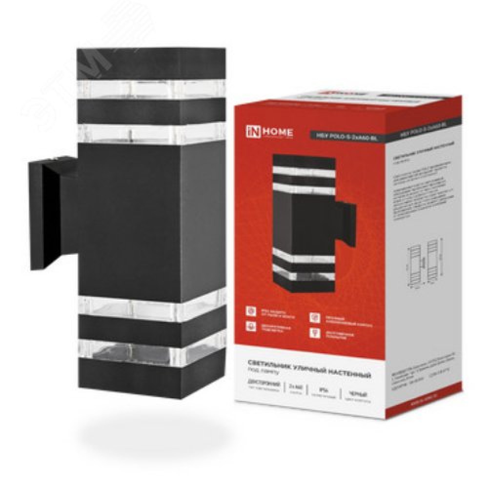 Светильник уличный настенный двусторонний НБУ POLO-S-2хA60-BL алюминиевый черный IP54 IN HOME 0 857 ₽