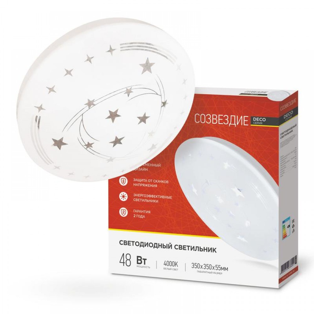 Технические характеристики Светильник светодиодный DECO СОЗВЕЗДИЕ 48Вт 4000К 4320лм 230В 380х55мм IN HOME 4690612038551