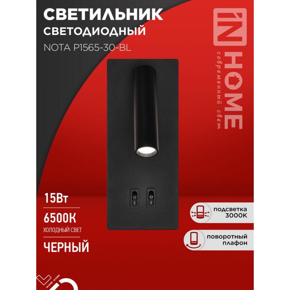 Светильник светодиодный NOTA P1565-30BL 15Вт 6500К с подсветкой 3000К черн. IN HOME 4690612060200