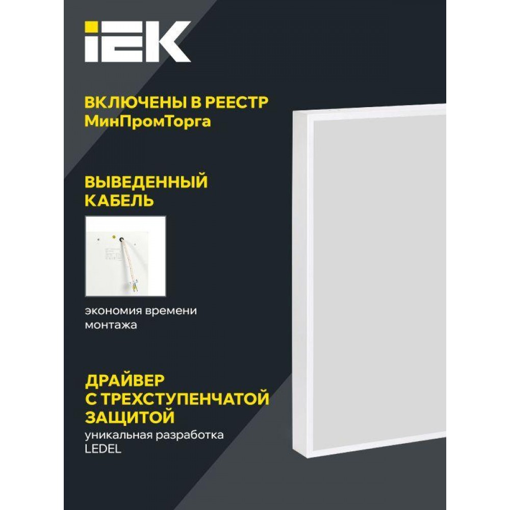 Технические характеристики Светильник светодиодный ДВО 1201 PRO 40Вт 4000К IP54 панель опал IEK LTP-DVO1-1201-40-40-K01