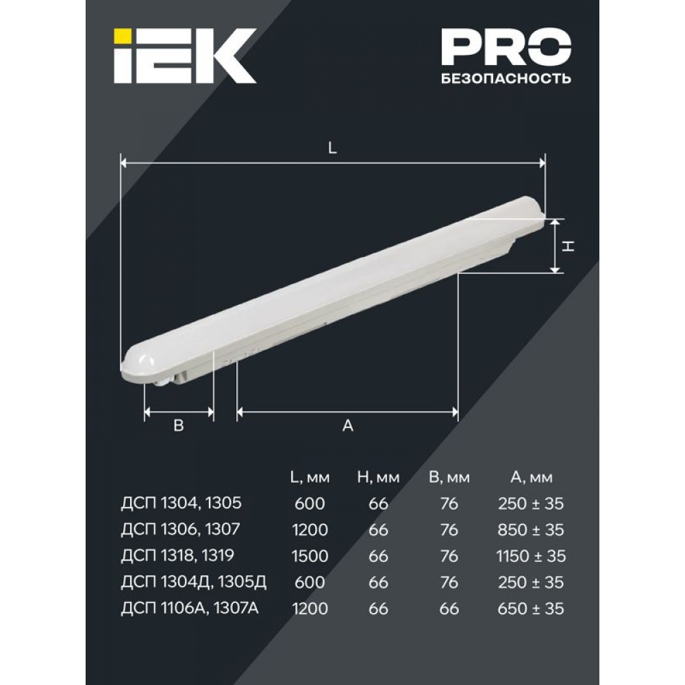 Технические характеристики Светильник светодиодный ДСП 1319 48Вт 6500К IP65 1500мм пластик сер. IEK LDSP0-1319-48-6500-K03