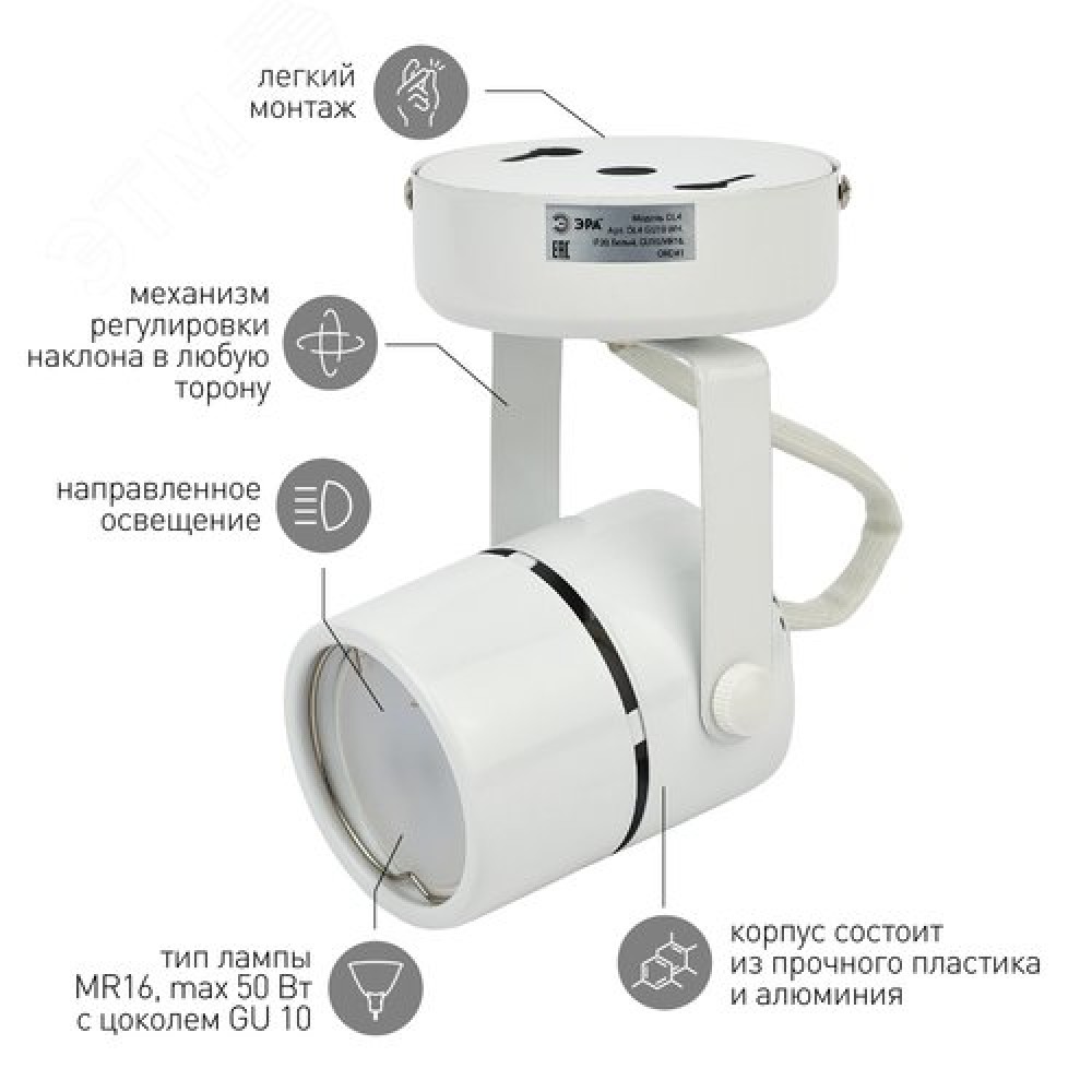 • Светильник Накладной, белый OL4 GU10 WH (50/900)