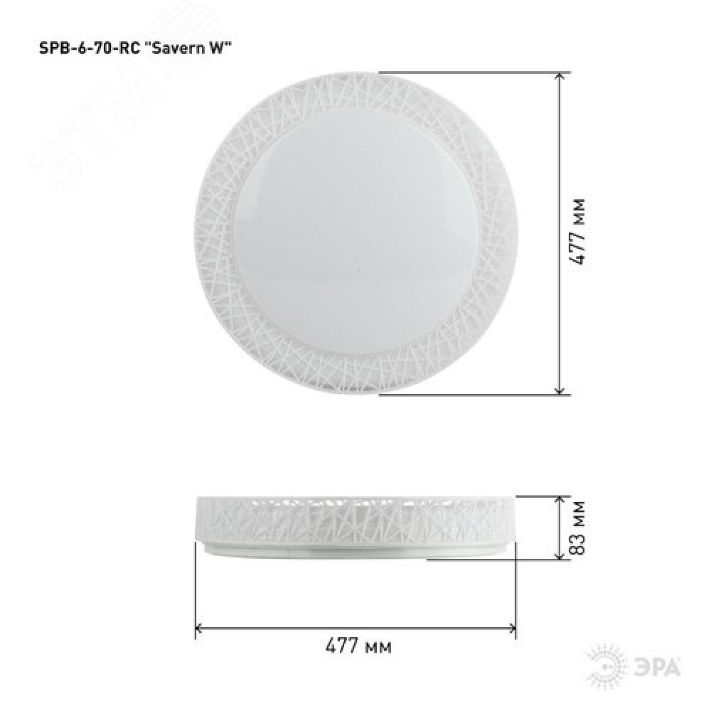 Технические характеристики Светильник потолочный Классик с ДУ SPB-6-70-RC Savern W светодиодный с пультом ДУ, 70 Вт 3400-5500К