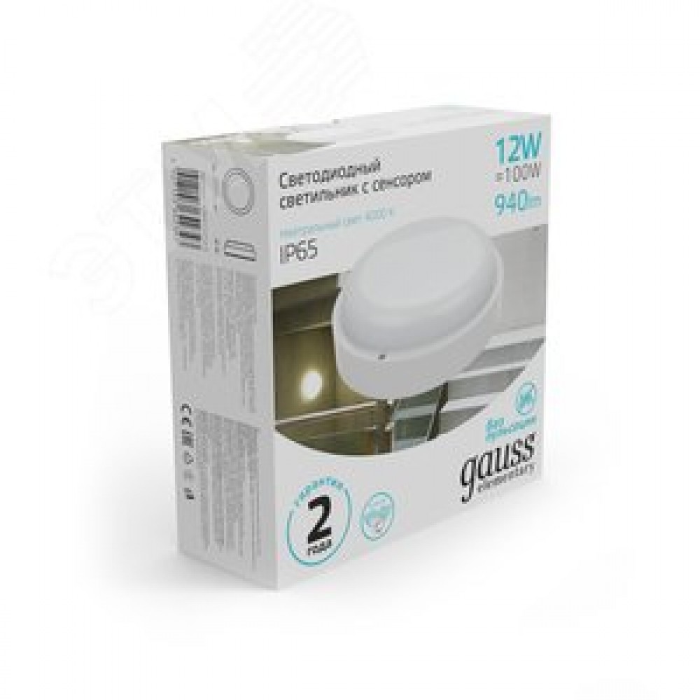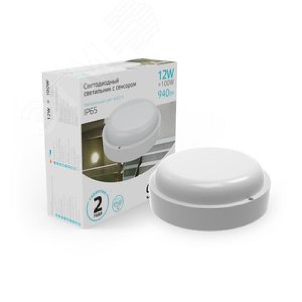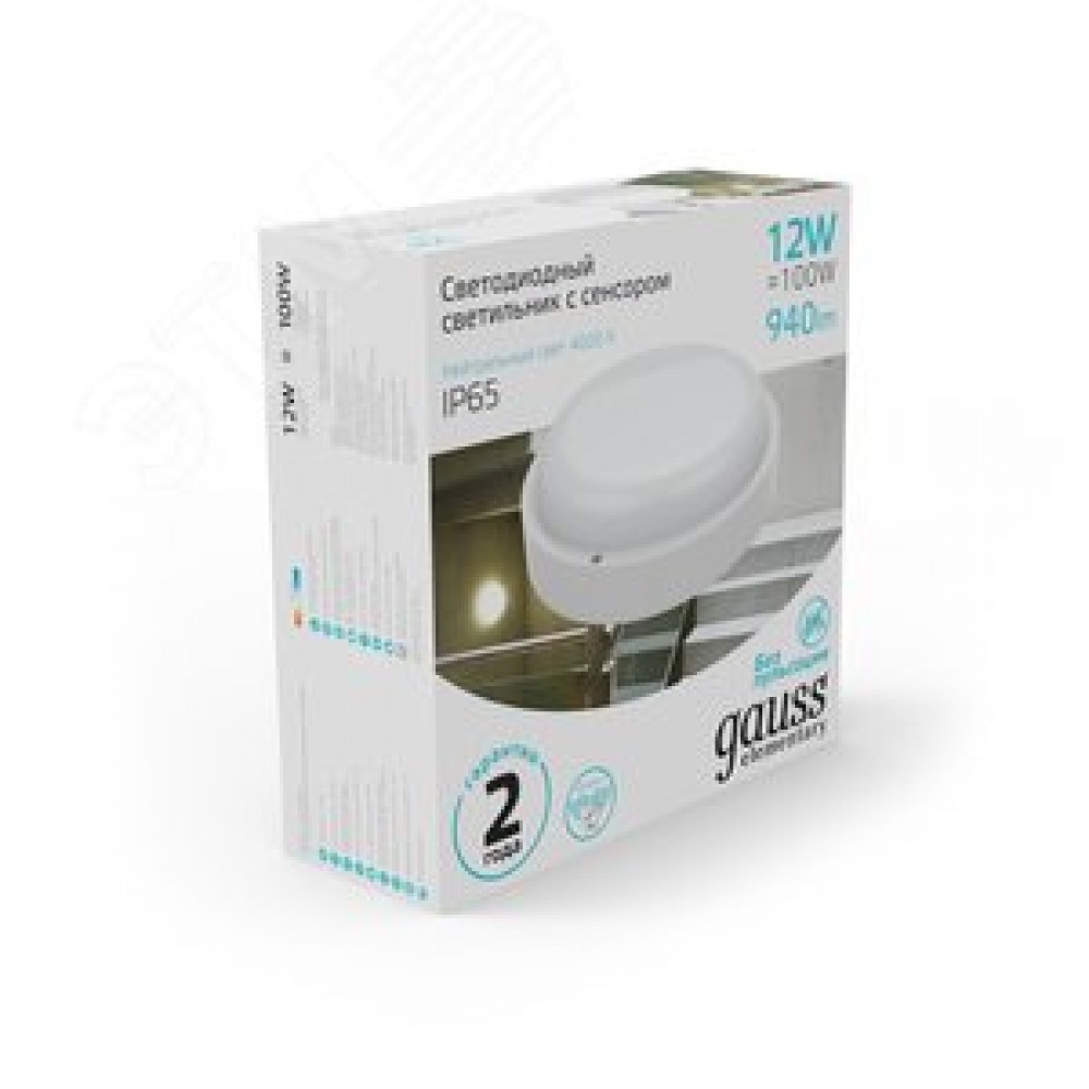 Технические характеристики Светильник светодиодный ДБП 12 Вт 940 лм 4000К AC 220В Белый IP65 круг D140х48мм Пластик ЖКХ с оптико-микроволновым датчиком движения Elementary