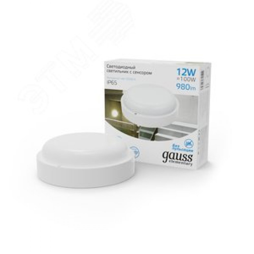 На складе Код товара: etm-3909538 Светильник светодиодный ДБП 12 Вт 940 лм 4000К AC 220В Белый IP65 круг D140х48мм Пластик ЖКХ LITE Gauss
