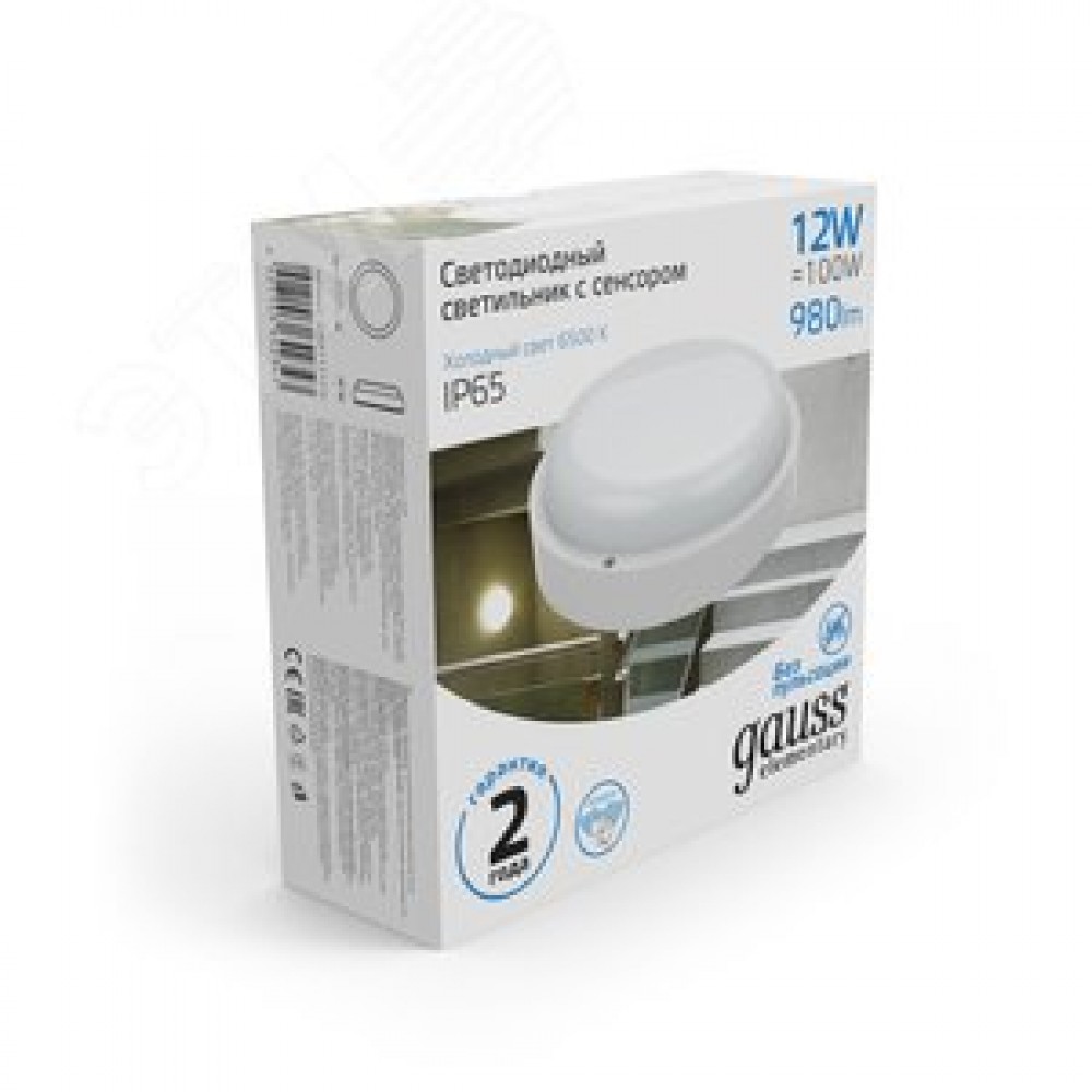 На складе Код товара: etm-2961735 Светильник светодиодный ДБП 12 Вт 940 лм 4000К AC 220В Белый IP65 овал 160х90х46мм Пластик ЖКХ LITE Gauss