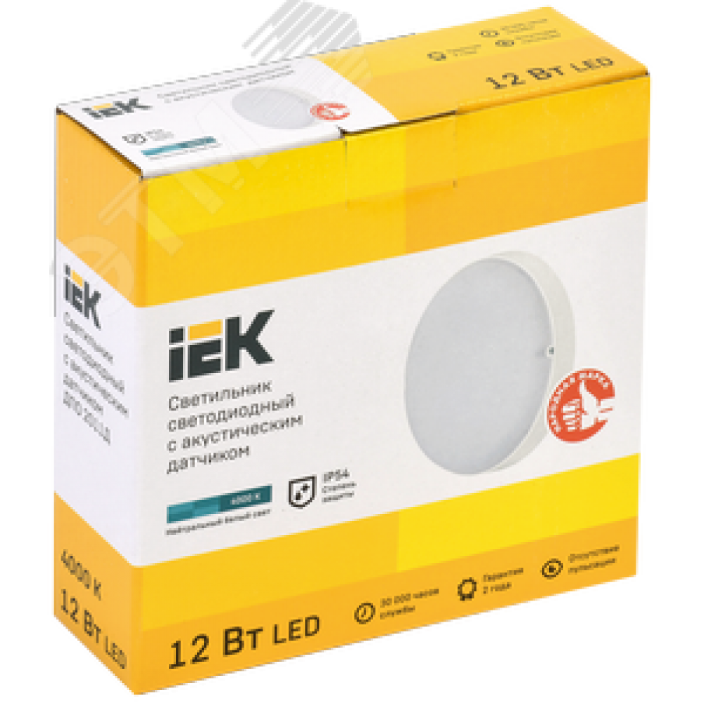 Технические характеристики Светильник светодиодный ДПО 2011Д 12Вт IP54 4000К круг белый с акустическим датчиком