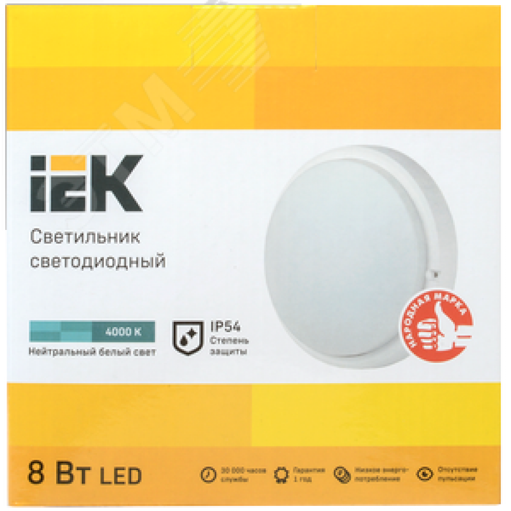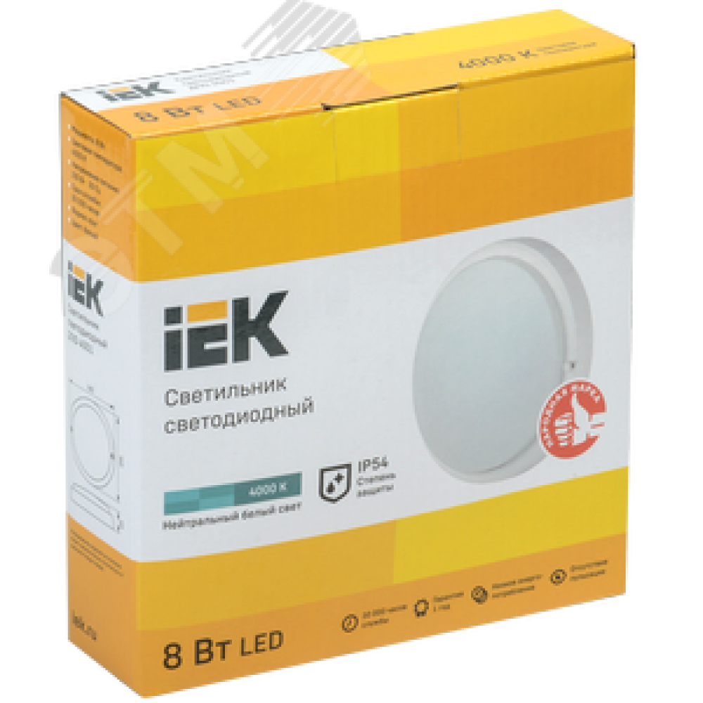 Технические характеристики Светильник светодиодный ДПО 4001 8 Вт IP54 4000K круг белый пластик