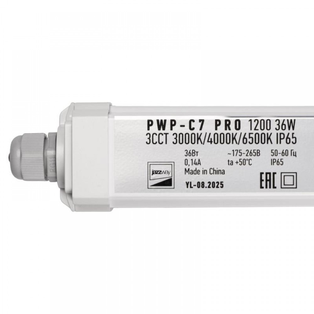 • Светильник светодиодный PWP-C7 PRO 1200 36Вт 3000К/4000К/6500К IP65 5400лм ДСП 3CCT влагозащ. с переключением цветовой температуры Pro+ JazzWay 5068834