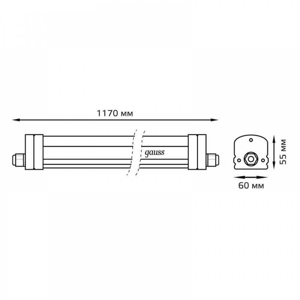 Технические характеристики Светильник светодиодный Universal 36Вт 6500К IP65 3630лм 1170х60х55мм ДСП линейный сквозная проводка GAUSS 843425336