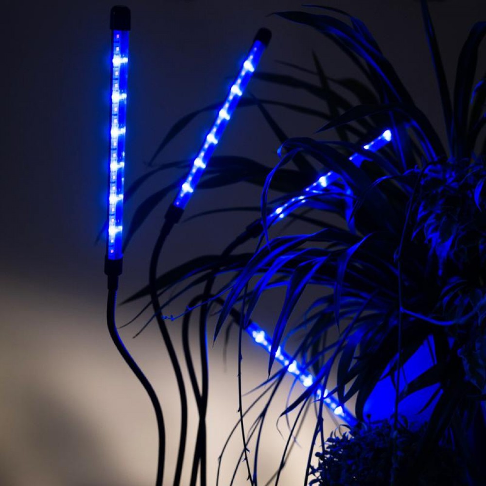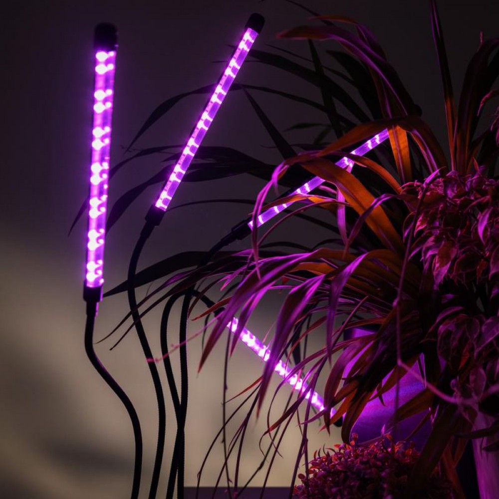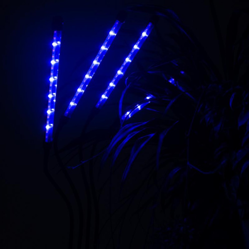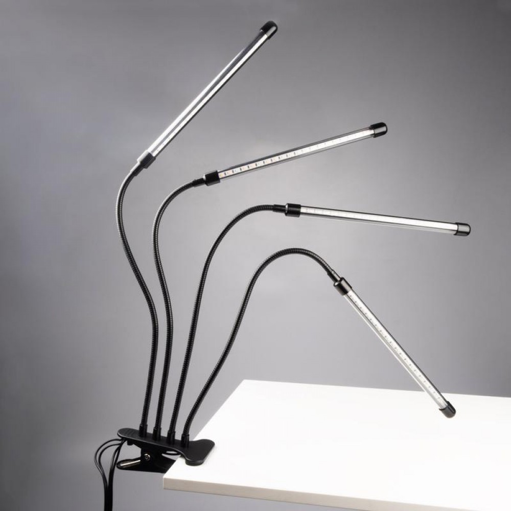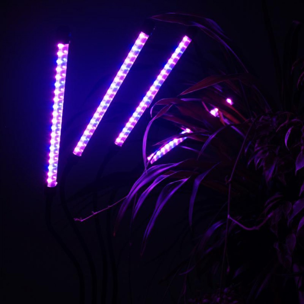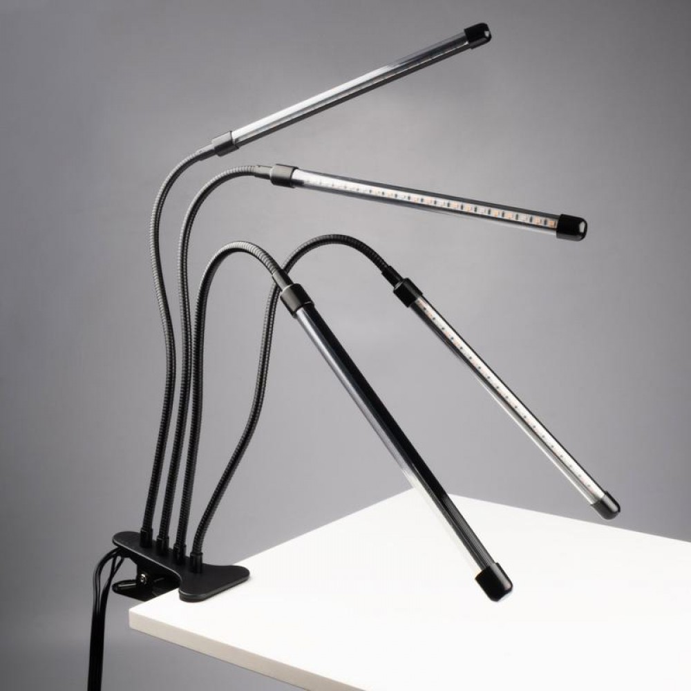 Светильник состоит из четырех отдельных фитоламп на гибких держателях, подключается к сети питания с помощью USB-кабеля со встроенным пультом управления (входит в комплект).