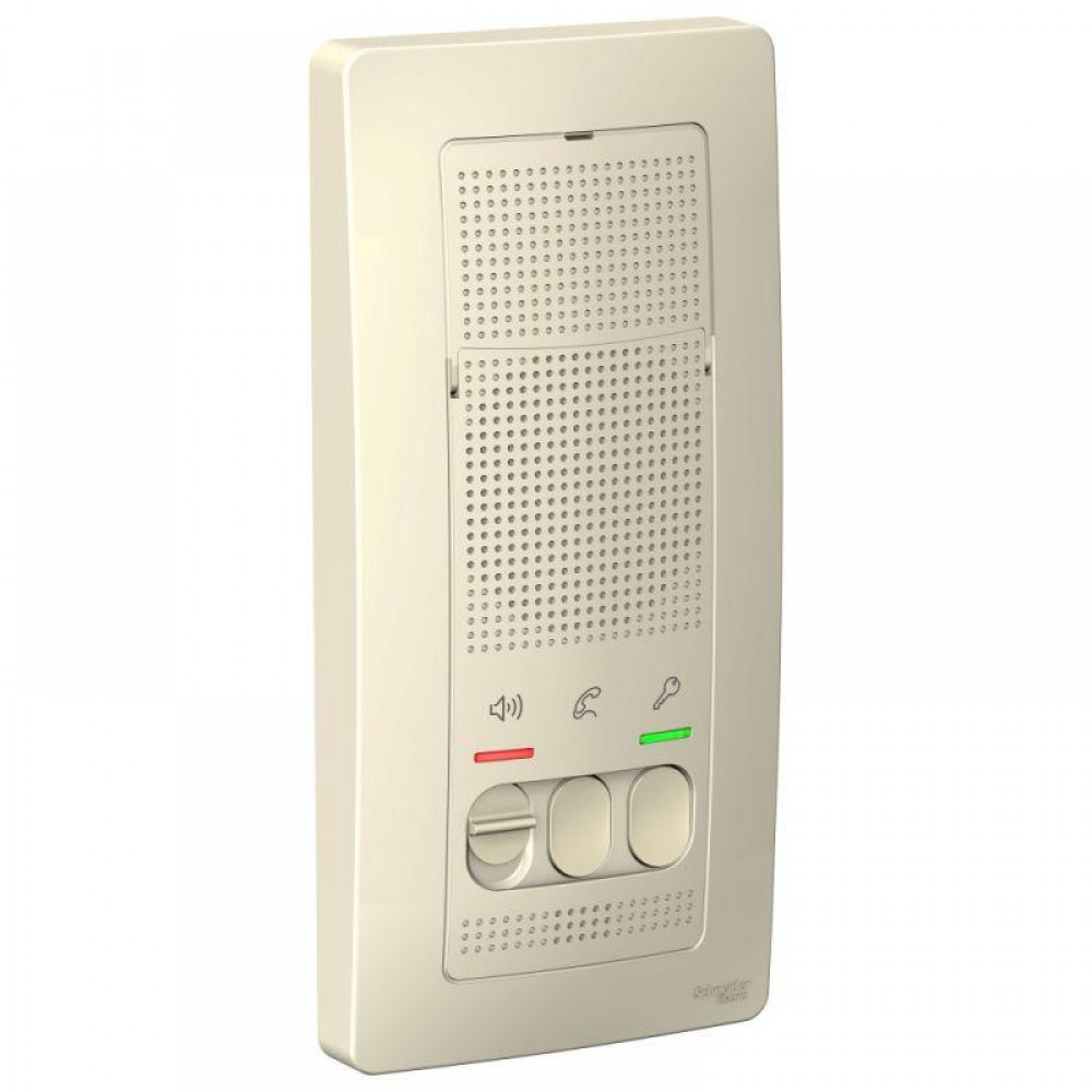 Устройство Systeme Electric (ранее Schneider Electric) BLANCA (цвет – молочный) переговорное настенного монтажа предназначено для домофонных систем, питается от батарейки (3 элемента питания ААА х 1,5В). Громкость устройства регулируется, нанесены символы «Звук» и «Разговор». Размеры устройства: 187*84*25 мм. Корпус изделия выполнен из ABS-пластика.