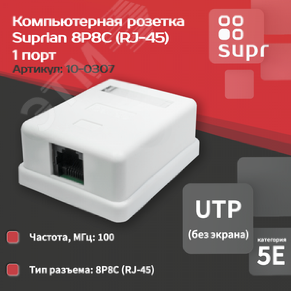 • Компьютерная розетка 8P8C (RJ-45), UTP, Cat.5e, 1 порт