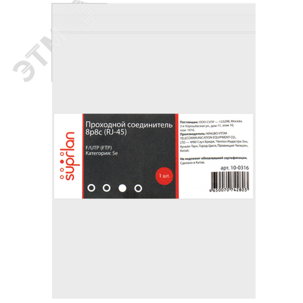 Соединитель проходной 8P8C (RJ-45) FTP. Cat.5e 0 212 ₽